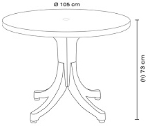Компактний і функціональний круглий стіл Favori 105 розрахований для комфортного розміщення п'яти осіб. Відмінно впишеться в ландшафт садової ділянки, буде доречний на відкритій терасі літнього кафе. Стіл міцний і стійкий, оснащений ніжками з регулюванням висоти. У конструкції столу передбачено отвір з заглушкою для установки парасольки. Виріб виготовлено з поліпропілену, стійкого до перепадів температури, дії вологи, УФ-випромінювання. Збереже відмінний зовнішній вигляд і бездоганну якість протягом усього терміну служби. Стіл призначений для використання в житлових приміщеннях, громадських місцях, на вулиці. Стіл поєднується зі стільцями Papatya Favori.
