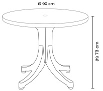 Компактний і функціональний круглий стіл Favori 90 розрахований для комфортного розміщення чотирьох осіб. Відмінно впишеться в ландшафт садової ділянки, буде доречний на відкритій терасі літнього кафе. Стіл міцний і стійкий, оснащений ніжками з регулюванням висоти. У конструкції столу передбачено отвір з заглушкою для установки парасольки. Виріб виготовлено з поліпропілену, стійкого до перепадів температури, дії вологи, УФ-випромінювання. Збереже відмінний зовнішній вигляд і бездоганну якість протягом усього терміну служби. Стіл призначений для використання в житлових приміщеннях, громадських місцях, на вулиці. Стіл поєднується зі стільцями Papatya Favori.