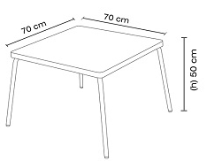 Міні столик виготовлений з поліпропіленової стільниці з металевою основою. Призначений для дитячих ігрових кімнат та спалень. Досить легкий, не становить небезпеки, миється без зусиль, має антистатичний захист. Стільниця Mini Table Decorated покрита декоративним оздобленням з дуже кумедною кольоровою графікою.