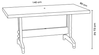 Стіл Prestige 80x140 створений для великих сімей і дружніх компаній, за ним зручно можуть розташуватися шість осіб. Ідеальний для застосування на садовій ділянці, а також буде доречний на відкритій терасі літнього кафе. Стіл міцний і стійкий, ніжки з регулюванням висоти і протиковзкими заглушками. У конструкції столу передбачено отвір для установки парасольки, закрите заглушкою. Матеріал вироби поліпропілен, матеріал стійкий до низьких і високих температур, вологи, УФ-випромінювання. Збереже відмінний зовнішній вигляд і бездоганну якість протягом усього терміну служби. Підходить для використання всередині приміщення і на вулиці.