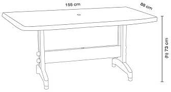 Стіл Prestige 88x155 створений для великих сімей і дружніх компаній, за ним зручно можуть розташуватися шість осіб. Ідеальний для застосування на садовій ділянці, а також буде доречний на відкритій терасі літнього кафе. Стіл міцний і стійкий, ніжки з регулюванням висоти і протиковзкими заглушками. У конструкції столу передбачено отвір для установки парасольки, закрите заглушкою. Матеріал вироби поліпропілен, матеріал стійкий до низьких і високих температур, вологи, УФ-випромінювання. Збереже відмінний зовнішній вигляд і бездоганну якість протягом усього терміну служби. Підходить для використання всередині приміщення і на вулиці.