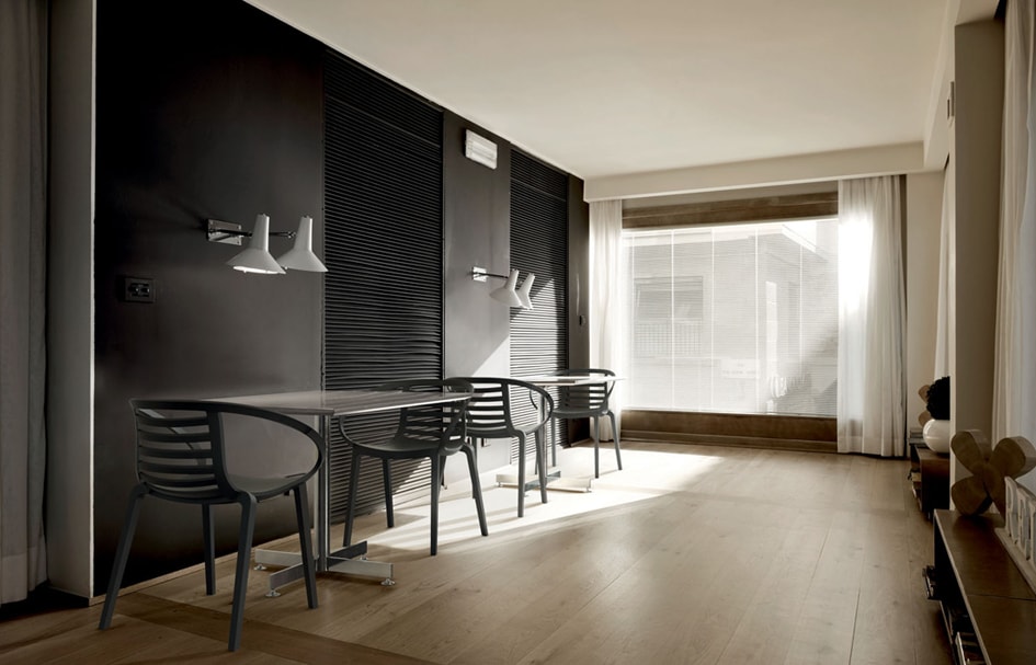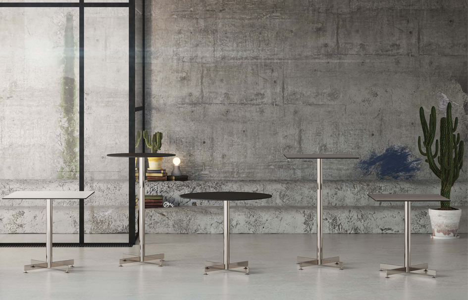 Gama – елегантний та вишуканий стіл, відрізняється завершеними формами на хромованій основі. Може бути виконаний у різних розмірах та кольорах. Використовується у приміщеннях.