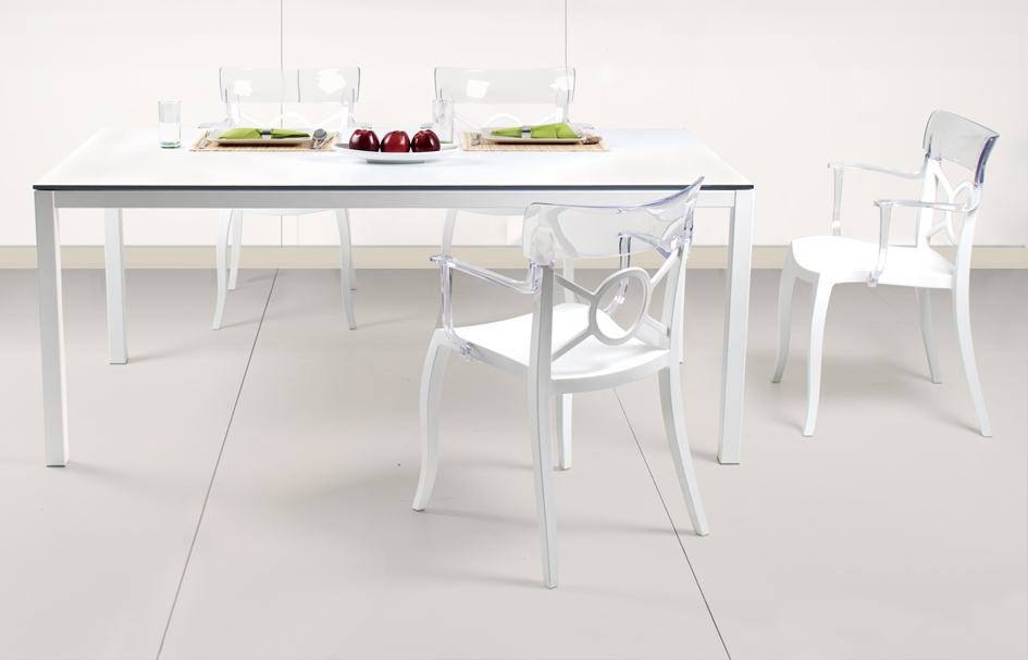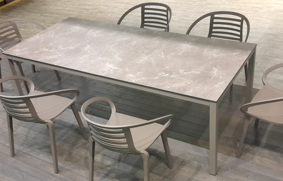 Найбільш висока міцність конструкції. Суворі лінії дозволяють столу чудово вписуватися в сучасну атмосферу. Його можна використовувати як усередині приміщення з хромованим покриттям, так і на відкритому повітрі з порошковим фарбуванням.