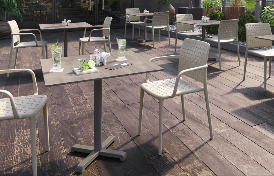Простота, що здається, у поєднанні з модними тенденціями, народжують відмінний дизайн столу, який зможе задовольнити запити в будь-яких приміщеннях. Підходить для використання як усередині, так і зовні.