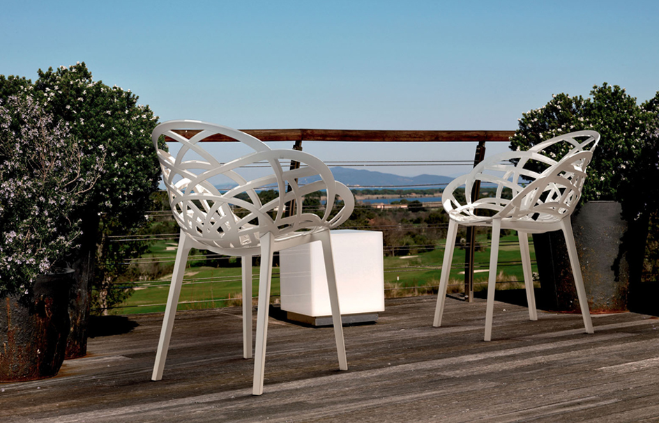 Ажурне крісло Flora нагадує обрисами ніжну квітку. Плавні вигини крісла, що забезпечують зручну посадку і стійкі ніжки роблять його максимально комфортним. Сидіння матове, виготовлено з полікарбонату, основа - з поліпропілену, ніжки оснащені поліуретановими заглушками. Крісло виготовлено з міцних матеріалів, стійких до подряпин, механічних пошкоджень, дії вологи. Чудово доповнить собою інтер'єр вітальні, спальні, обідньої зони. Може бути використано для облаштування приміщення кафе, ресторану. Можна використовувати в приміщенні і на вулиці.