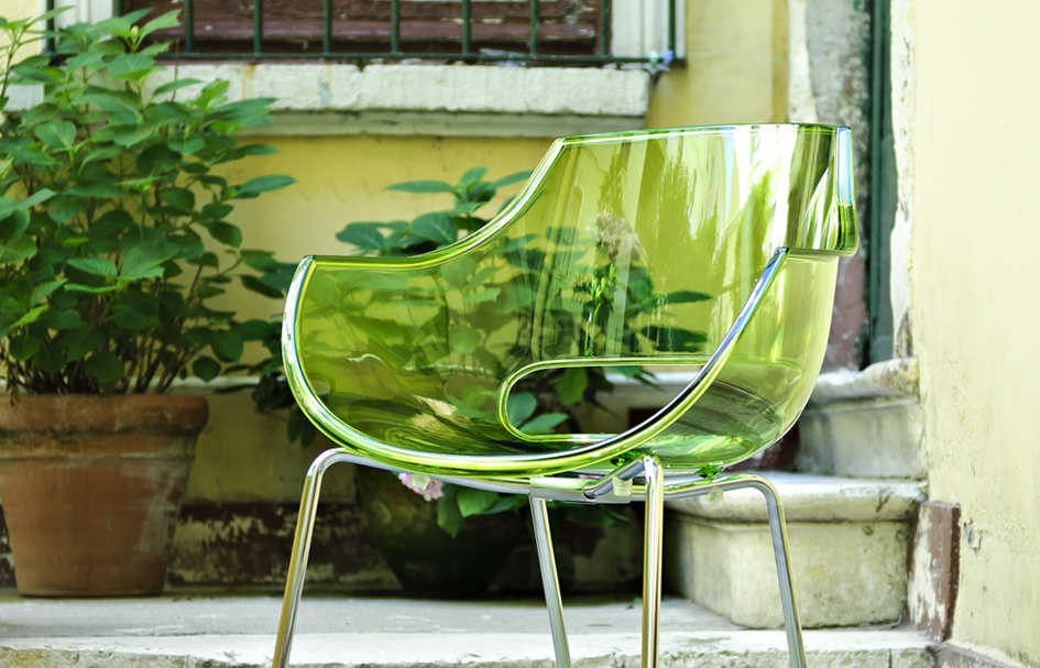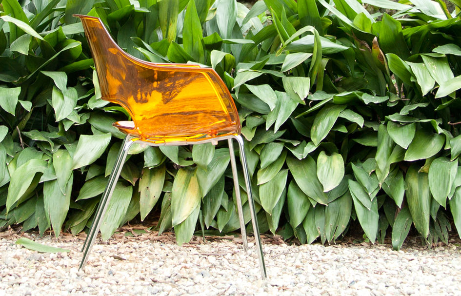 Напівкругле дизайнерське крісло Opal ергономічної форми, укомплектовано зручними сидінням і спинкою. Безшовне крісло виготовлено з прозорого полікарбонату - міцного матеріалу, стійкого до впливу вологи, до подряпин, механічних пошкоджень. Ніжки хромовані, глянцеві, оснащені поліуретановими заглушками. Крісло гармонійно впишеться в інтер'єр вітальні, спальні, кухні, обідньої зони. Може бути використано для облаштування приміщення кафе, ресторану, робочого кабініу, офісу. Крісло рекомендується використовувати виключно в приміщенні.